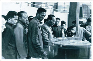 1958年毛澤東主席在北京展覽館興致勃勃地參觀荏原展臺