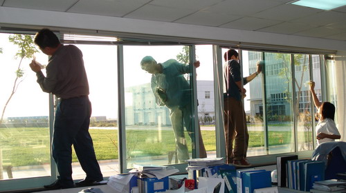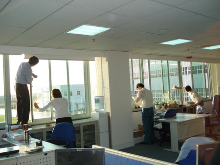 業務技術黨支部共32人參加勞動,支部書記梁文運與支委們首先對負責清理的二樓、四樓場所及會議室的窗戶和地面進行了詳細分工,使大家在有限的時間內有條不紊的進行。特別是二樓只有13人參加勞動,衛生清理工作量比較大,但大家都沒有任何怨言。在勞動中,鄭素紅、房凝、徐寶紅、牛愛香四位女同志連續工作一個半小時打掃了二樓的所有辦公室和會議室的地面。李正民副總和李同華副總率先帶頭擦起了窗戶,在擦完窗戶后大家又把所有的窗臺和地面的衛生死角清理了一遍。